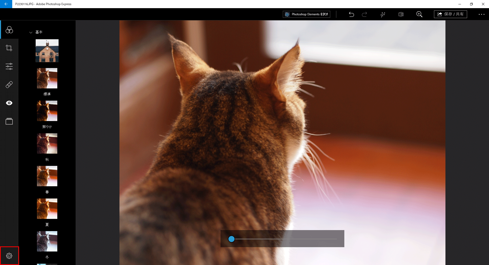 Photoshop Expressでは簡単に画像のエフェクトの変更やカットなどの編集が行えます。