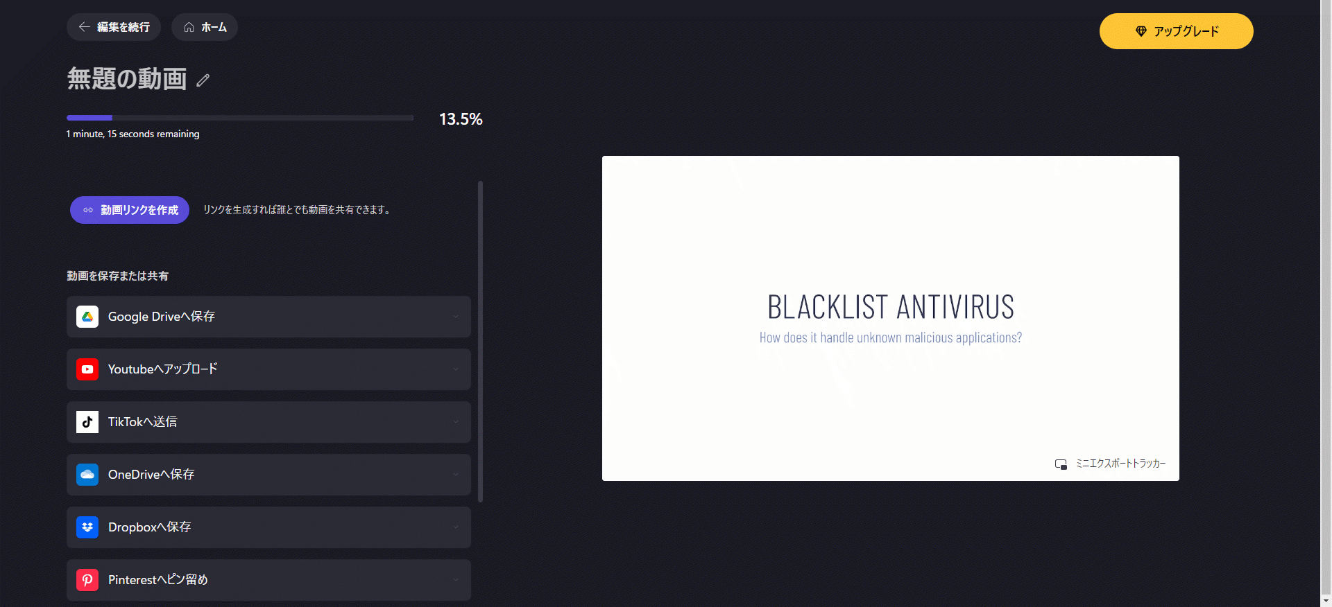 有料版もあり、無料版で行える事は限られていますが、テキストを追加したり、動画を短くしたりなど、様々な事が行えます。